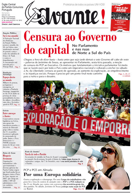 Hoje mesmo, traduzindo o sentimento de indignação e revolta que percorre o país, o PCP anunciou a apresentação de uma moção de censura ao governo que atesta a nossa mais veemente condenação da sua política de mentira e mistificação.
