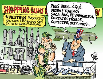 «El más grande vendedor y traficante de armas en el mundo lo es el imperio de los Estados Unidos. Vende sofisticadas armas a sus más fieles aliados. Enfrenta gobiernos vendiéndoles armas a los dos a la vez y se forma el embrollo que ellos mismos organizan. Y en esa gigantesca avalancha del mayor de sus "negocios" hasta los terroristas se benefician porque de alguna manera reciben esas armas a través de terceros...»