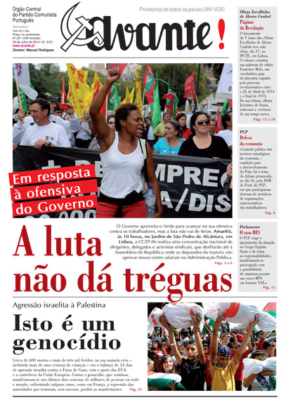 A luta não dá tréguas 24.07.14 para visualizar clique aqui-sinto-me: Tags:avante!blogblogscastendocomunistajornalmarxismo-leninismonotíciaspartido comunista portuguêspcprevolucionário publicado às 09:46 link do post comentar favorito