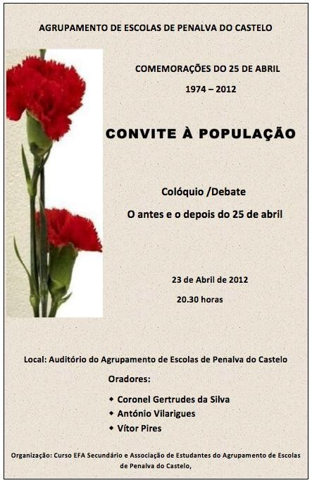 Mais. O senhor Presidente da Câmara Municipal de Santa Comba Dão manifestamente convive mal com as opiniões contrárias. Provoca, de uma forma deliberada e ostensiva, o Portugal nascido a 25 de Abril de 1974. Utiliza a democracia e a liberdade para melhor as insultar. Estava à espera de o quê?