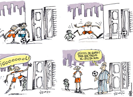 - Golo de quem? Para eu saber quem deve pagar o vidro partido!