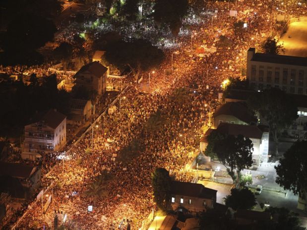 As manifestações de sábado à noite foram as maiores movimentações de massas de sempre em Israel, tendo surgido na sequência das iniciativas desencadeadas, há cerca de um mês, pelos jovens com baixos salários, precários ou desempregados.»
