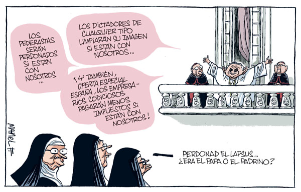 - Os pederastas serão perdoados se estiverem connosco... Os ditadores de qualquer tipo limparão a sua imagem se estiverem connosco... E também - OFERTA ESPECIAL ESPANHA! - os empresários gananciosos pagarão menos impostos se estiverem connosco!