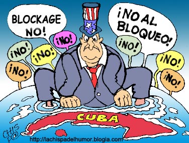 ¡No al bloqueo yanqui contra Cuba!, desenho de Chispa (Douglas Nelson Pérez)