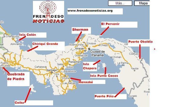 A escasos días de conmemorarse dos décadas de la trágica invasión de Estados Unidos a Panamá la madrugada del 20 de diciembre de 1989, compañeros del Frente Nacional y Social de Panamá (Frenaso) de ese país envían este mapa de bases o estructuras estadunidenses que podrán repartirse por todo el país.