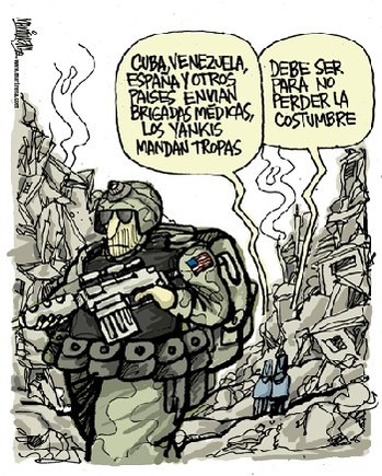 Han estado más de un siglo los Estados Unidos consagrados a la fabricación de dictaduras militares en América Latina, entonces a la hora de defender una democracia como en el caso de Honduras, ante un clarísimo golpe de Estado, vacilan, tienen respuesta ambiguas, no saben qué hacer, porque no tienen práctica, les falta experiencia, llevan más de un siglo trabajando en el sentido contrario, entonces comprendo que la tarea no es fácil. En el caso de las bases militares en Colombia no solo ofende la dignidad colectiva de América Latina sino también la inteligencia de cualquiera, porque que se diga que su función va ser combatir las drogas, ¡por favor, hasta cuando! Casi toda la heroína que se consume en el mundo proviene de Afganistán, casi toda, datos oficiales de Naciones Unidas que cualquiera puede ver en Internet. Y Afganistán es un país ocupado por Estados Unidos y como se sabe los países ocupantes tiene la responsabilidad de lo que ocurre en los países ocupados, por lo tanto, tienen algo que ver con este narcotráfico en escala universal y son dignos herederos de la reina Victoria que era narcotraficante.
