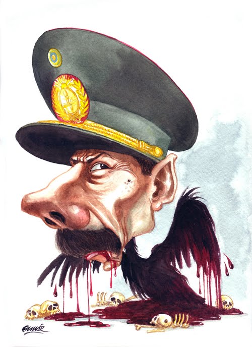 «Esta es una caricatura que muestra toda la ferocidad de la que fue capaz este sujeto llamado Jorge Rafael Videla, miembro de una estirpe de militares argentinos emparentados con otros de su misma calaña que también hay en toda América Latina.