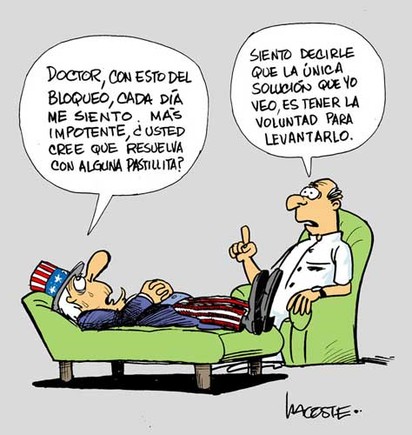 Tio Sam: Doutor, com isto do bloqueio, cada dia me sinto mais impotente. O senhor acredita que se possa resolver com uma pastilhita?
