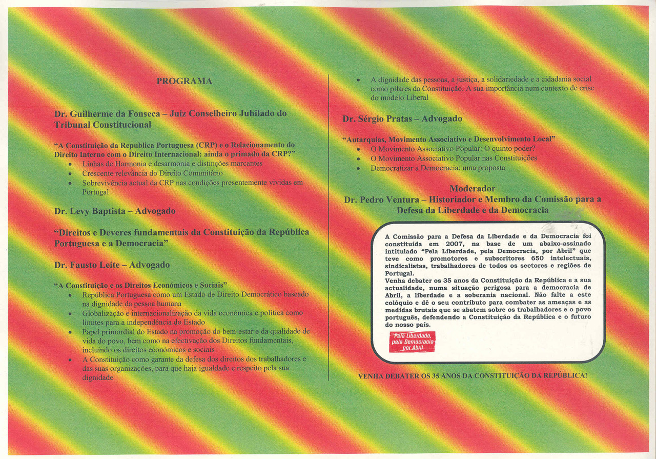 Assistimos de há muito a uma ofensiva que crescentemente põe em causa direitos, liberdades e garantias que são conquistas inalienáveis de Abril. Sempre com novas formas e conteúdos. Com a implementação de formas meticulosamente elaboradas de condicionamento e paralisia da acção e intervenção social e laboral, mas também política. Com a ausência total de medidas visando uma sempre maior e mais consciente participação dos cidadãos na vida política, económica, social e cultural do país.