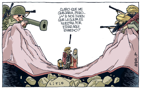«Os EUA confirmaram a existência de reservas minerais milionárias no Afeganistão e preparam o saque daqueles recursos naturais. Os depósitos inexplorados no subsolo afegão incluem gigantescas quantidades de ferro, cobalto, cobre, ouro e, sobretudo, lítio, um metal fundamental na produção de baterias para telemóveis e computadores portáteis. Um relatório do Pentágono, baseado numa pesquisa efectuada por geólogos ao serviço do governo de Washington, afirma mesmo que o país é a «Arábia Saudita do lítio», podendo as jazidas ultrapassar as conhecidas na Bolívia, maior produtor mundial daquele bem.»