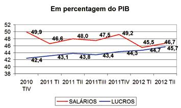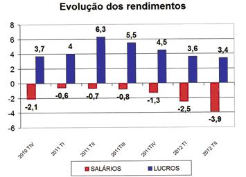 Os valores apurados mostram bem que, apesar da crise e da diminuição do emprego, as empresas continuam a expandir os seus rendimentos (juros de capital, dividendos e rendas das empresas, ou seja, lucros não distribuídos), cujo peso relativo no Produto Interno Bruto (PIB) tem vindo a aumentar consistentemente, ao mesmo tempo que o peso dos salários revela uma tendência inversa.